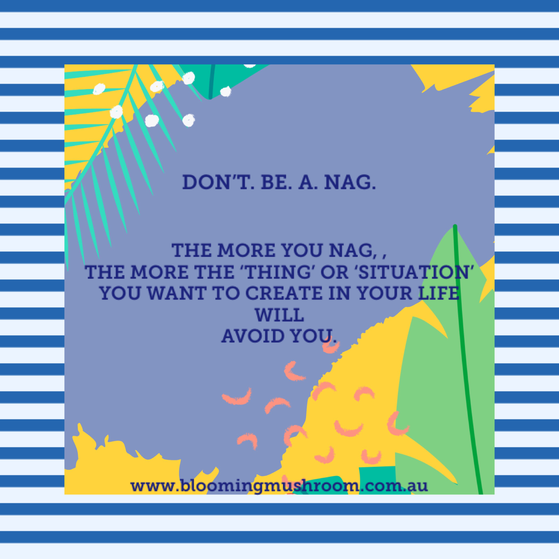 The more you nag, the more the ‘thing’ or ‘situation’ you want to create will try and avoid you.