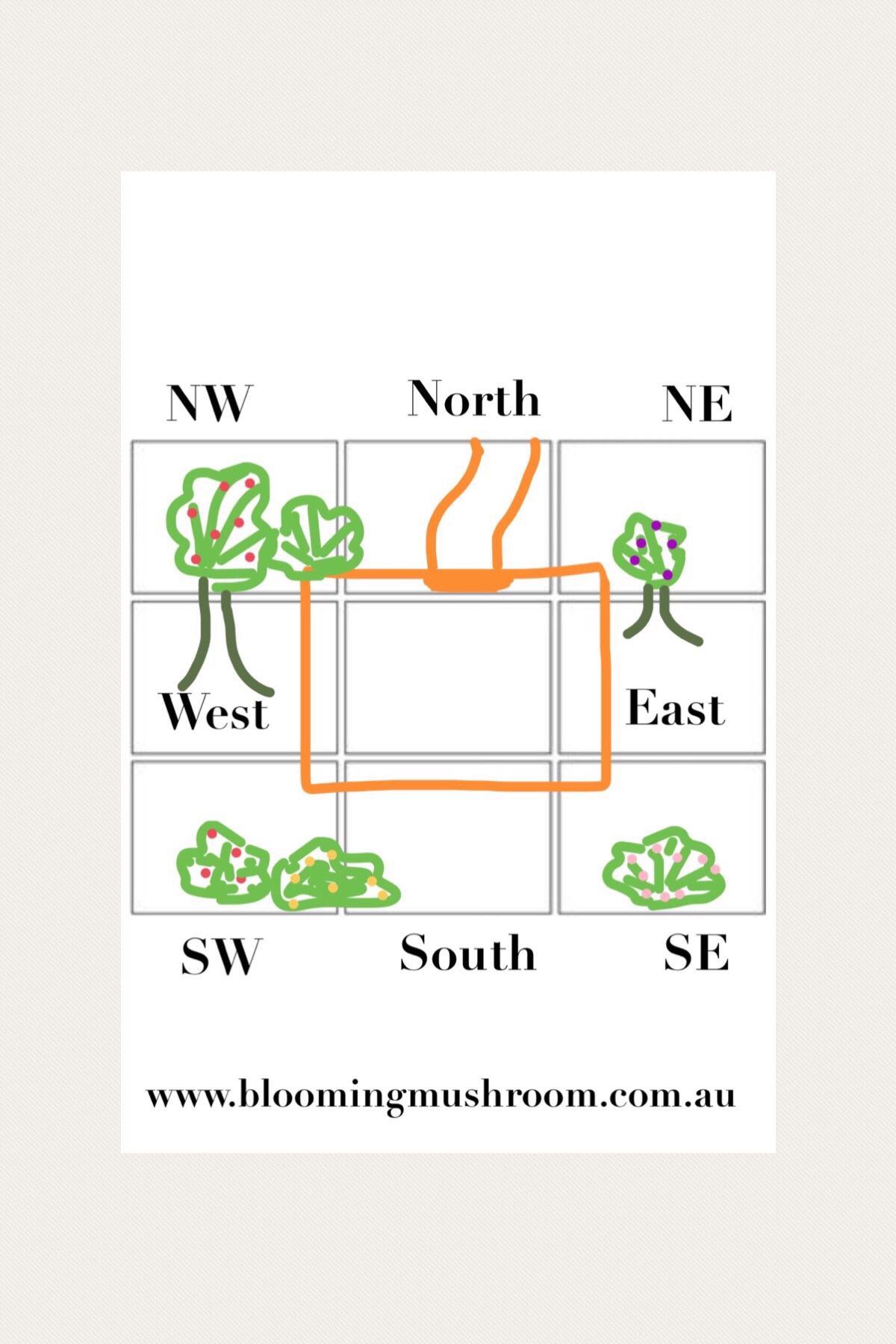 You can use the same principle on a farm too. Just work out the directions by standing at your front door and then mark out your property’s outline on a piece of paper, with the house on it too, and then see where all the directions fall on the property.